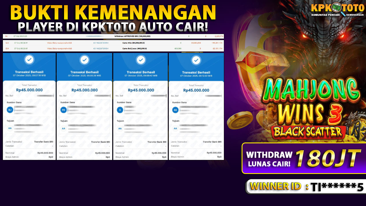 Bandar togel KPKTOTO merupakan bandar togel dan slot online yang membayar semua kemenangan member hingga lunas. Setiap pembayaran pada situs kami dilakukan dengan cara transfer ke rekening tujuan yang sudah di daftarkan pada situs togel online kami, Pembayaran hanya dapat di proses jika rekening yang di daftarkan telah valid dan dapat di transfer. Semua kemenangan member yang mendapatkan hadiah jackpot terbesar akan kami posting agar semua pemain dapat melihat bandar situs terpercaya KPKTOTO ini membayar semua kemenangan member hingga lunas. Setiap postingan yang kami posting akan kami lakukan sensor pada nomor rekening 4 digit dan nama rekening untuk menjaga privasi dan kerahasiaan member. Postingan Jackpot yang kami posting agar member atau pemain yang belum pernah bermain bisa melihat bandar togel Bukan Kaleng Kaleng Seperti KPKTOTO ini, Semua postingan jackpot yang kami posting dapat di lihat data keasliannya melalui nomor reff yang di tunjukan pada bank atau mbanking saat kita melakukan transfer.