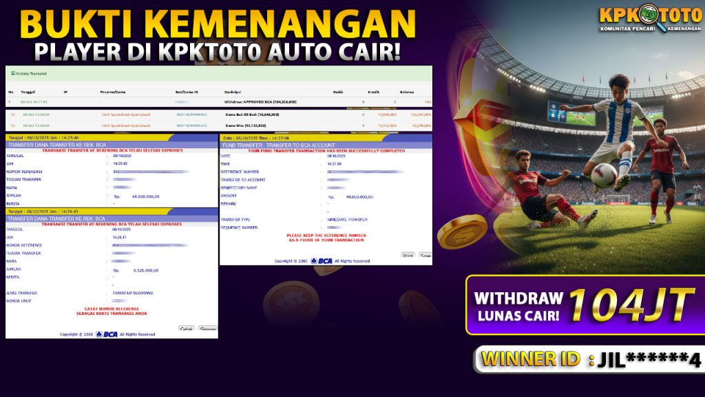 Bandar togel KPKTOTO merupakan bandar togel dan slot online yang membayar semua kemenangan member hingga lunas. Setiap pembayaran pada situs kami dilakukan dengan cara transfer ke rekening tujuan yang sudah di daftarkan pada situs togel online kami, Pembayaran hanya dapat di proses jika rekening yang di daftarkan telah valid dan dapat di transfer. Semua kemenangan member yang mendapatkan hadiah jackpot terbesar akan kami posting agar semua pemain dapat melihat bandar situs terpercaya KPKTOTO ini membayar semua kemenangan member hingga lunas. Setiap postingan yang kami posting akan kami lakukan sensor pada nomor rekening 4 digit dan nama rekening untuk menjaga privasi dan kerahasiaan member. Postingan Jackpot yang kami posting agar member atau pemain yang belum pernah bermain bisa melihat bandar togel Bukan Kaleng Kaleng Seperti KPKTOTO ini, Semua postingan jackpot yang kami posting dapat di lihat data keasliannya melalui nomor reff yang di tunjukan pada bank atau mbanking saat kita melakukan transfer.